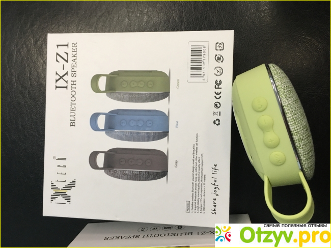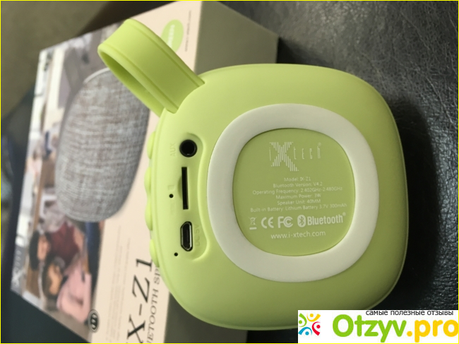 Лаконичная, но эффектная упаковка, внутри также есть краткая инструкция по применению, хотя в принципе все довольно просто и наглядно. В комплект также входит зарядное устройство: стандартный разъем microUSB Сама колонка очень легкая, весит примерно как сам телефон. Есть разъемы наушников, зарядки, карточек SD, с торца мягкие кнопки управления. Есть силиконовая петелька, например, крепить к сумке.