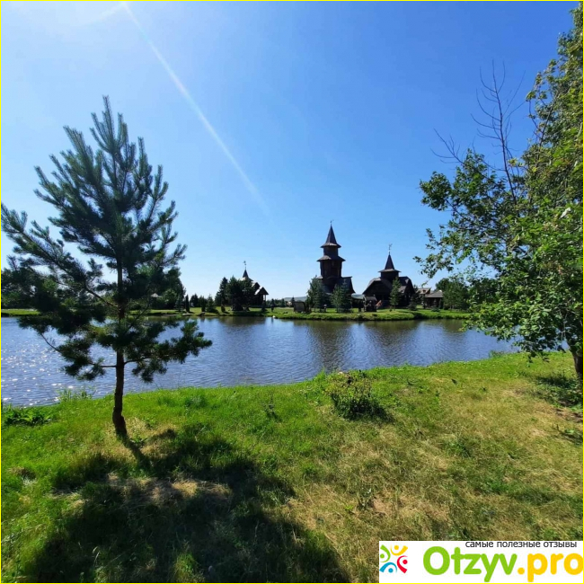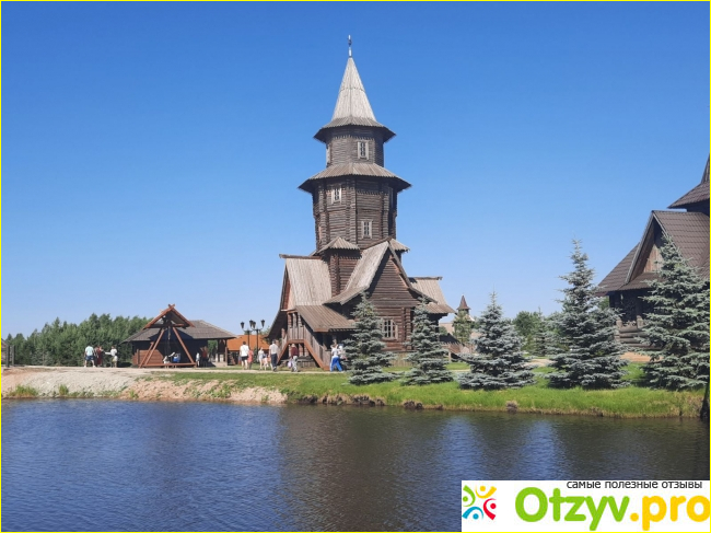 Что посмотреть: Необыкновенную, рукотворную красоту! Центральное украшение это озеро или пруд. Купаться нельзя, только смотреть. Кругом стоят деревянные сооружения по типу новгородских построек. Среди них растёт множество туй, можжевельников, елей. Аромат нереальный. Рядом ходит семья оленей, косуля, огромный лось. По большому периметру стоят беседочки, в них можно перекусить, но урн нет, мусор вы должны унести с собой. Об этом обговаривается еще на входе. Не спешным шагом мы обходили территорию где-то 1 час 15 минут, останавливались, делали фото.