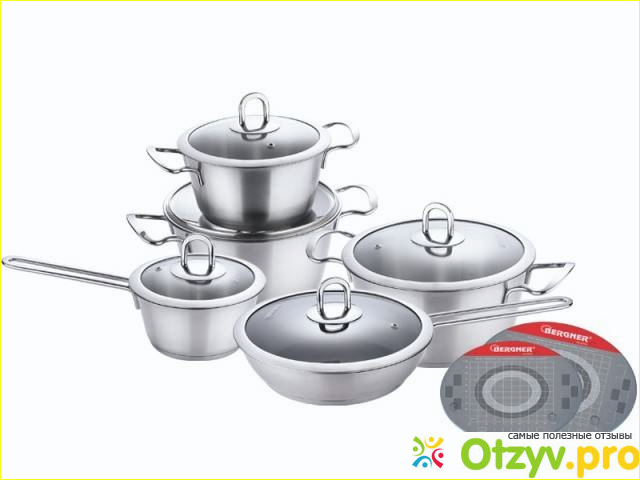 Почему именно на ней? Меня соблазнила ее не слишком высокая цена. А продавец пояснила, что качество этой продукции не уступает дорогим и известным производителям. Я прочитала информацию об этой фирме и узнала что основана она в тысяча девятьсот девяносто пятом году в Австрии. В ассортименте у них есть и кастрюли, сковородки разнообразные. Есть обычные или гриль , сотейники, ковши, миски. А также наборы для специй, хлебницы, ножи и многое другое, что пригодится на вашей кухне. Производитель Бернер предлагает также купить посуду в наборах. Это значительно экономнее, чем покупать каждую вещь по отдельности. В набор входят кастрюли. От маленькой до большой. У всех них разный литраж. И у всех кастрюлях очень хорошее капсульное дно. И оно многослойное. Состоит их пяти слоев. В некоторых наборах еще есть и сковорода или чайник.
