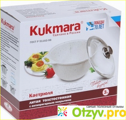 "Кукмара" изготавливается в одноименном городе республики Татарстан. Посуда этого бренда имеет богатую историю в несколько десятков лет и это только добавляет ей плюсов. С изделиями от "Кукмары" я познакомилась можно сказать случайно, когда мама подарила мне сковороду для использования в духовке. Приготовив при ее помощи пирог из дрожжевого теста я поняла, что данный посуде можно доверять. Поскольку пирог получился отменным, пропекся и подрумянился равномерно.