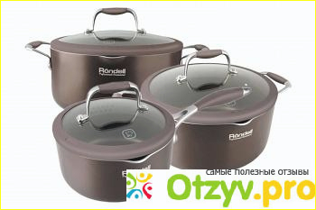 Вся посуда марки rondell делается из трех слоев, котрые включают в себя: нержавеющую сталь, аллюминей и снова нержавеющую сталь.