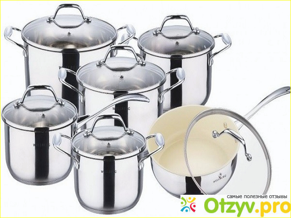 Сразу оговорюсь, что плиту мы поставили индукционную, а к ней, как известно нужен особый подход: только та посуда, ко дну которой можно приклеить магнитик (чтобы проводила индукционные волны, другая посуда здесь просто не будет нагреваться). Долго листала каталоги на сайтах, читала отзывы и остановилась на том, что мне подойдет посуда Wellberg, потому что ее преимущественно хвалят, изготавливается она по последним технологиям и обещает и качество, и долгий срок службы. Для тестирования я заказала набор посуды Pro Series из 12 предметов: пять кастрюлек, сковорода и прозрачные крышки к ним. Порадовало все, но особенно отличилась сковородка с мраморным покрытием, я с таким удовольствием еще никогда не готовила. Даже яичницу, которую раньше в принципе не признавала, я полюбила всей душой, но только ту, которая получается на Wellberg.