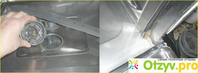 Если перед загрузкой посуду сполоснуть хотя бы холодной водой, то мыть саму машину придется реже. Я болела, загружала в машину посуду даже с остатками пищи. В результате под уплотнительной резинкой дверцы много грязи собралось, сейчас буду мыть. Ну и фильтр нужно тоже вынимать и мыть. Это не сложно. Фильтр выкручиваю и замачиваю в банке с раствором Фейри.