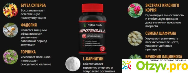 Если зайти в аптеку, то глаза разбегаются, как много сейчас продается различных средств, которые направлены на усиление потенции. При этом, Potensall имеет исключительно натуральный состав, в нем нет компонентов имеющих химические составляющие. Итак, в состав входят: