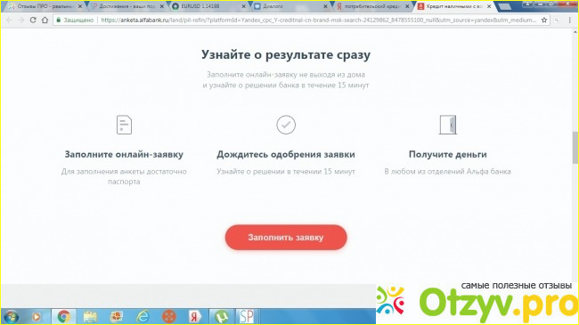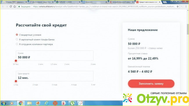Теперь рассмотрим подробнее потребительский кредит от Альфа Банка на его сайте.