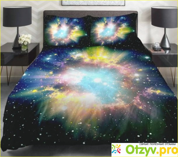 Постельное белье 3D Galaxy произвело на нас очень сильное впечатление! Глубокие, насыщенные краски передают атмосферу космического пространства, а 3D-эффект дает ощущение объема. Данный комплект продается в магазине A Nice Night Official Store, производитель - Китай. При этом качество считаю хорошим! В комплект входят простыня, пододеяльник на двухспальную кровать и 4 наволочки, размеры европейские.