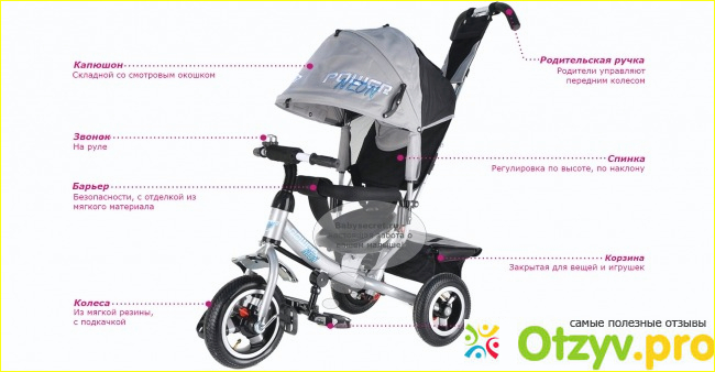 В данной модели велосипеда сделана крепкая, хромированная ручка для родителей. Ею очень легко и удобно управлять, потому нам с малышом нравилось пользоваться таким транспортом.