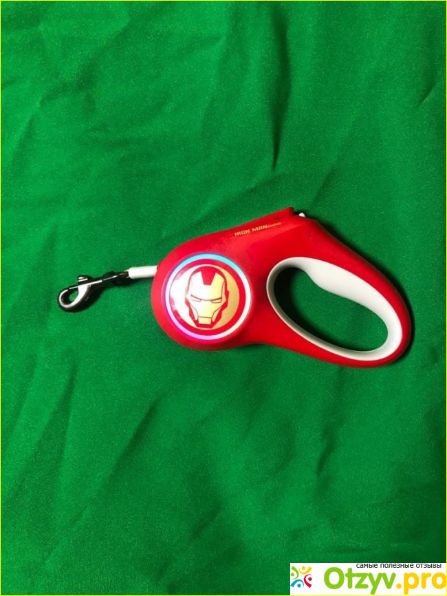 Мне очень понравился этот поводок в использовании, его удобно держат в руке, так как ручка прорезиненная, также очень удобно то, что в нем присутствует полуавтоматическая блокировка и собака резко не убежит куда-то, кнопка управления тормозом тоже удобная, буквально под большим пальцем руки, не нужно куда-то тянуться. Сенсорная панель по бокам корпуса, которая отвечает за свечение поводка сбоку, работает не только от тепла рук, то есть ей можно управлять в перчатках и буквально коснувшись поводком об ногу. По внешнему виду поводок выглядит очень стильно, корпус красный с изображением супергероя. Само свечение по бокам делает его особенным. Очень важную роль играет встроенный фонарик, который действительно хорошо освещает дорогу, полезно в темное время суток. Единственным минусом для меня является то, что длина поводка всего лишь 3 метра. Лично для меня было бы идеально, если бы он был 5 метров, но таких в продаже у этого брэнда к сожалению нет.