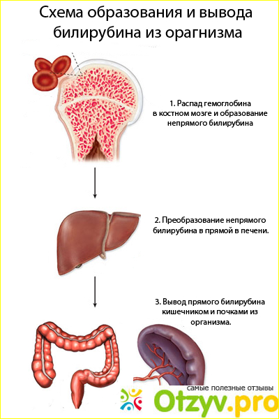 Тут большое значение будет иметь, если он накопился в избытке в крови или если его очень много в моче. Это называется гипербилирубинемией и билирубинурией. Если билирубин в обычном состоянии, то он похож на вещество кристаллическое. В воде его растворить очень трудно, также это касается глицерина, эфира, в спирте растворяется очень слабо. Билирубин у нас в организме образуется постоянно и без перерыва, так как он представляет собой продукт от распада эритроцита. Изначально в наших тканях и крови появляется билирубин прямой, это токсические вещество, которое в воде практически невозможно растворить и из организма не выводится. Если с организмом все в порядке, то он с кровью сразу попадет в печень и начинает образовываться уже форма прямая. И уже такое прямое вещество из организма выводится легко с мочой или калом. И именно он дает нашему калу коричневый цвет.