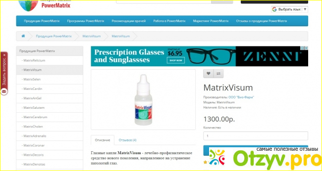 Здравствуйте, уважаемые читатели! В этом отзыве речь пойдет о продукции компании Powermatrix. А конкретнее, я бы хотела рассказать вам о глазных каплях «Matrix Visum», так как пока что из всего великого разнообразия товаров для красоты и здоровья, представленного этой компанией на рынке, я успела испробовать на себе лишь эти капли для глаз. Но, забегая вперед, сразу могу сказать, что капли эти мне очень понравились своим качеством: что производитель обещал — то я и получила в итоге.
