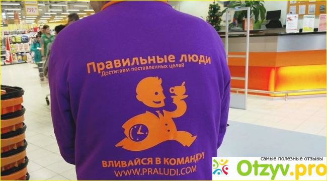 Теперь в плане работы, там платят точно, а вот требуют еще больше и имеется очень серьезная система штрафов, за опоздание на работу в течение пару минут, а также еще и определенное время на обед по 15 минут и в 30 минут на обед, так что нужно заводить будильник, чтобы не дай Бог не проворонить свое время. В рабочее вемя сложный процесс, можно сидеть на кассе, то есть непосредственно сидеть и пробивать товар, брать с людей деньги и это весь день на потоке и соблюдать все стандарты обслуживания магазина в зоне кассы. Компания правильные люди предоставляют форму всем работникам, которую в случае увольнения или отказа от работы нужно возвращать обратно компании.