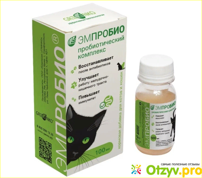 Итак, перед нами Эмпробио — это добавка в корм для кошек и других животных, которая содержит профессионально разработанную комбинацию эффективных пробиотических бактерий.