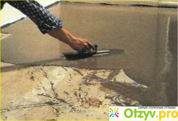 1. Если же поверхность пола состоит из множества неровностей, трещин и других повреждений, тогда следует осуществить предварительное шпатлевание. Для этого можно использовать быстросохнущие смолы или другие строительные массы, которые зачастую предназначаются для заделки больших трещин. Если же параметры всех неровностей составляют от 1 и до 3 см, то следует использовать специальный раствор, который создается из определенного концентрата песка и смеси в пропорции 5:1.