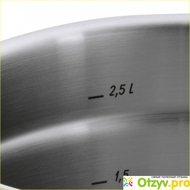 Есть в наборе еще две кастрюли поменьше, одна на на два литра, а втора на три литра. Обычно самую маленькую использую для приготовления соусов, когда нужно сварить совсем чего-то мало или, к примеру, яйца. Если варить в ней макароны на мою семью, то не очень удобно, выкипает и перемешивать не очень удобно. А в кастрюле на три литра уже можно сварить кашу, макароны, пюре. Также эти приборы ставлю и в духовку, отлично выдерживают, еда получается вкусной. Так пробовала готовить плов, очень рассыпчатый и наполненный вкусом. А еще, в кастрюльках есть внутри шкала, чтобы можно было увидеть сколько воды нужно вам наливать. Особенно, когда этого требует какой-то рецепт или просто проследить за объемом приготовленной еды.