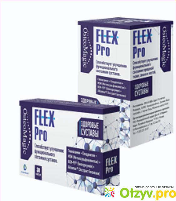 "Флекс Про" содержит в своём составе комплексные биологически-активные компоненты , которые имеют положительное воздействие на состояния суставов при этом уменьшается симптоматика заболевания опорно-двигательного аппарата. В его состав входят следующие компоненты - Экстракт куркумы – который может подавлять воспалительные клетки, которые разрушают хрящ. Смола босвелии – снимет воспалительные процессы. Глюкозамины и хондроитины – восстанавливают суставы. Метилсульфонилметан – формирует мышечную ткань , связки и хрящи.