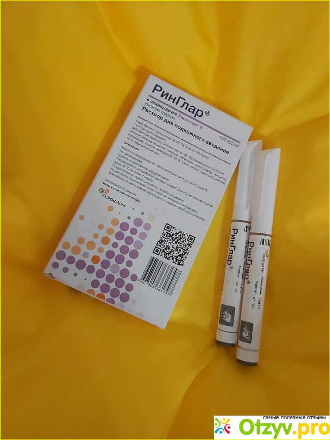 Выпускается ринглар в картонной упаковке - 5 ручек с дозировкой по 3 мл. Вообще упаковка достойная, не дешевка какая-то. Схема перехода 1:1, под контролем эндокринолога, естественно, прошла более чем мягко. Сахара в норме, как и было на импортном инсулине. Сейчас организм полностью перестроился, никаких проблем.