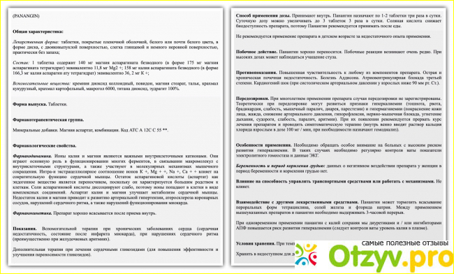 1. Панангин - недорогой лекарственный препарат, назначаемый больным с проблемами с сердцем (аритмия, стенокардия, тахикардия). Часто назначается в качестве профилактики и для пополнения уровня Кальция людям преклонного возраста. Основное назначение - это пополнить уровень Калия в крови после применения мочегонных средств, сильно вымывающих микроэлемент из организма (средства типа фурасемида);