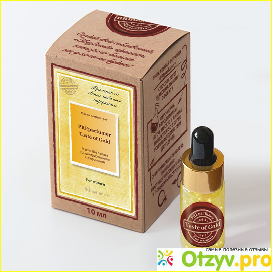 В его состав входит целый ряд афродизиаков – веществ, привлекающих внимание противоположного пола на подсознательном уровне. Препарфюмер служит основой для наших обычных духов и наносится на кожу перед их применением. В коллекции производителя 5 концентратов для женщин с разным ароматом, я пока остановила свой выбор на препарфюмере Teste of Gold («Вкус Золота»).