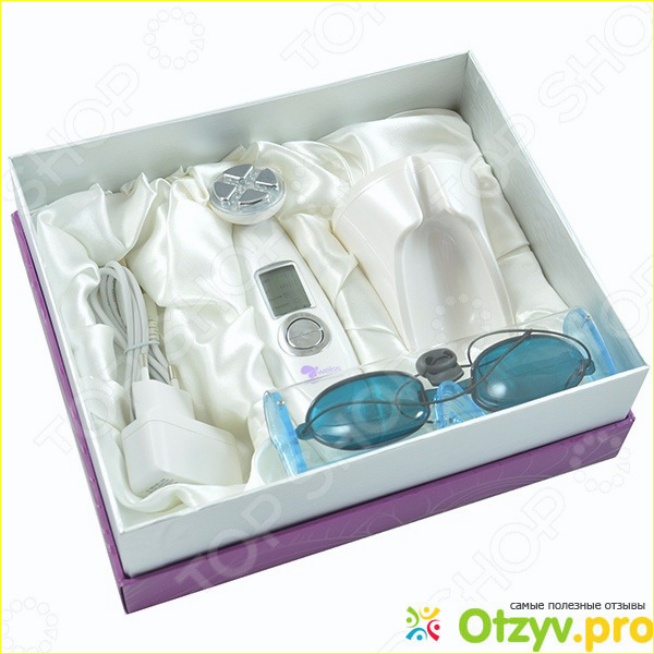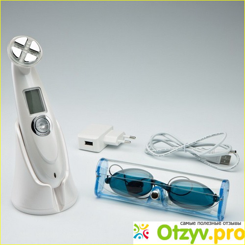 Сам же прибор продается в красивой и плотной коробочке бело-сиреневого цвета. Внутри самой коробочки от него вы найдете непосредственно сам прибор. Он достаточно компактный и с ним действительно приятно и удобно работать. Так же для прибора есть удобная подставка. По этому вы его всегда можете хранить у себя на полочке и он не будет занимать много места. По мимо этого к нему есть зарядное устройство. Причем работать он может как от сети так и от аккумулятора. И еще в наборе есть небольшие защитные очки.