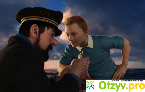 Герои вышли достаточно хорошими и запоминающимися, так что я расскажу немного и о них. Тинтин — очень интересный герой. Не смотря на то, что он ещё совсем юн, он всегда знает, как выбраться из той или иной ситуации. Персонаж он не особо смешной, но зато очень интересный. Хэддок — это последний человек из какого-то рода (простите, я не запомнил эту фамилию). Он единственный человек, знающий разгадку тайны, но из-за того, что он был алкоголиком — он всё забыл. Герой очень смешной, порой я долго смеялся над его действиями или речью. И, наконец, мой любимый персонаж — пёсик по кличке Снежок. Я уже давно стал замечать, что в подобный мультиках есть такой персонаж, которого не всегда видно, но тем не менее, очень смешной. По ходу фильма у меня возник один вопрос по поводу этой собачки. Как она оказалась на корабле? Нам ясно дали понять, что она не успела прыгнуть. Если вы знаете ответ, то напишите мне пожалуйста. Реально интересно, может я моргнул :) Кстати, нужно будет обязательно посмотреть мультфильм в оригинале. Очень уж хочется услышать реальные голоса Джейми Белла, Энди Серкиса, Дэниэла Крэйга и других.