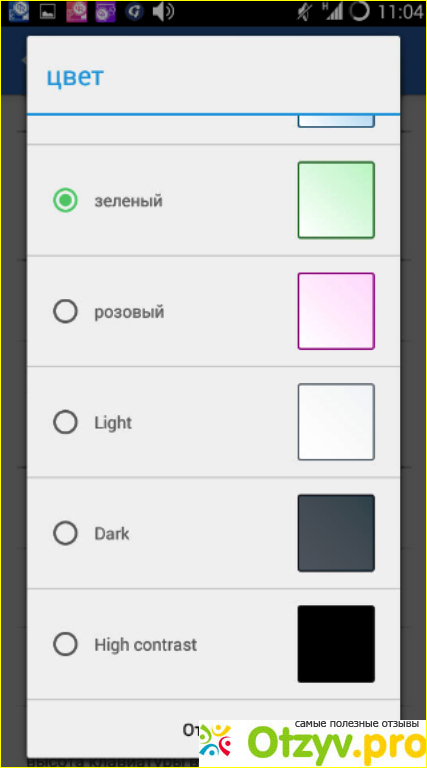 Размер шрифта в приложении бывает: большой, огромный, нормальный, маленький, крошечный. Чтобы выбрать нужный, достаточно щелкнуть пальцем в кружочек возле предпочитаемого размера.