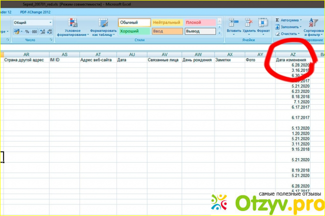 В файле 52 колонки, но они не заполнены. Только, отчество, фамилия имя и телефон. Заканчивается всё датой изменения колонкой "AZ". Некоторые номера дублируются. Есть небольшие недоработки, но программа всё же очень нужная.