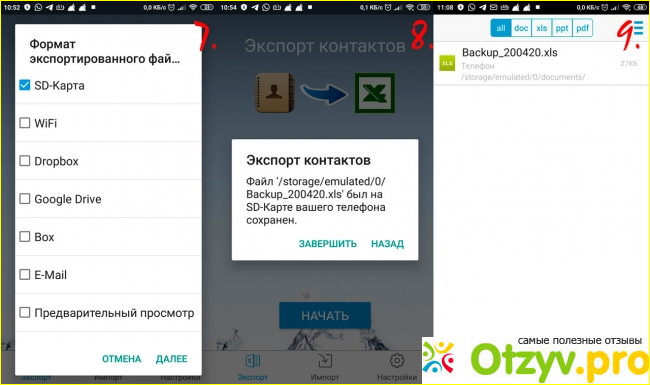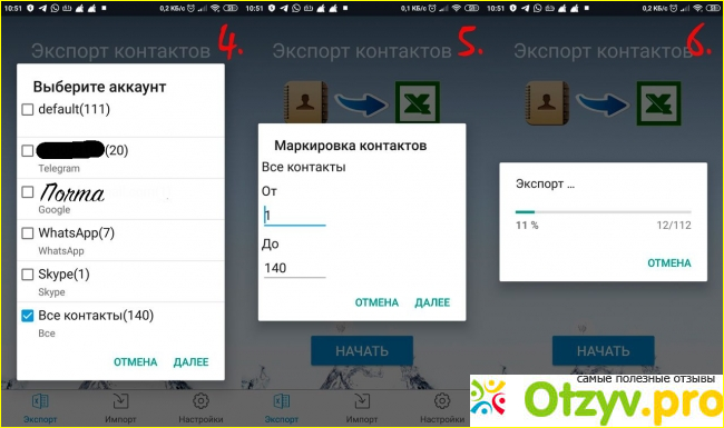 5) Подготовка контактов и экспорт.