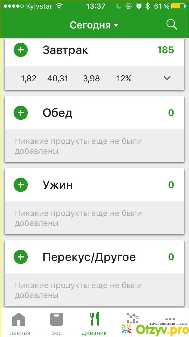 Здесь же имеются данные о соотношении жиров, белков и углеводов в съеденных вами продуктах.