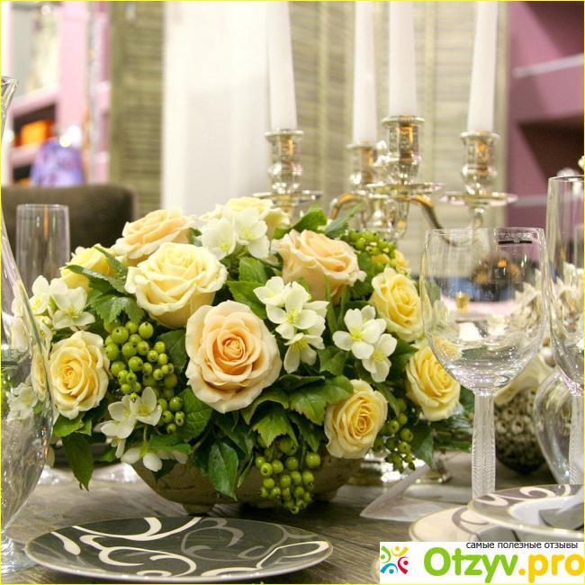 Или же, если букет готовится на какое-нибудь торжественное событие, день рождения, или тем более юбилей, то цветочная композиция, подготовленная к празднику, должна не выделяться, как-будто она принесена с другого праздника, а идеально вписываться в интерьер, торжественные декорации и общее окружение.
