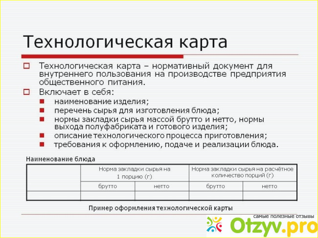 К сожалению сейчас начинают немного притеснять мелкий и средний бизнес, слишком много заморочек в этом плане, поэтому на плаву управленцам в различных сферах удержаться не так просто, потратив на это много нервов и финансовых средств. Конечно же в организации должны быть высококлассные специалисты, знающие свое дело. В противном случае фатальный исход и полная потеря репутации. К тому же конкуренция - это главный фактор, решающий кто и где будет главенствоваться на рынке продаж. А теперь я Вам хочу представить пример технологической карты, чтобы вам было более понятно.