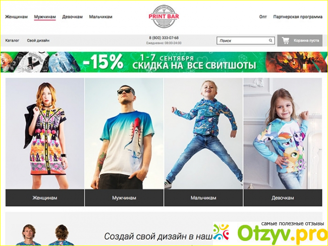 Но случилось так, что мне необходимо было выбрать подарок для своего молодого человека. Я никогда не была особенно сильна в вопросах выбора подарков, поэтому просто обратилась за советом к интернету. Одним из самых частых советов была именно футболка или другая вещь с принтом! Я уже поняла к тому времени, что просто выбрала неправильный магазин с более дешевыми ценами, от того и менее качественным конечным изделием. Сейчас же продешевить было никак нельзя. Долгие поиски увенчались успехом: я попала на сайт printbar.ru. Этот сайт привлек меня тем, что здесь можно было не только выбрать уже готовое изделие, но даже создать в конструкторе собственный дизайн! Но вполне возможно было выбрать и готовую вещь, так как выбор на этом сайте действительно просто огромен, потеряться можно! Это платья, майки, худи, свитшоты, чехлы, шапки... А еще мне понравился тот факт, что магазин пользуется технологией «Умная ткань», то есть при производстве используются ткани: сандвич, карилка, интерлок и прочие. Я сумела даже сэкономить на акции: закажи свитшот, получи майку за рубль!