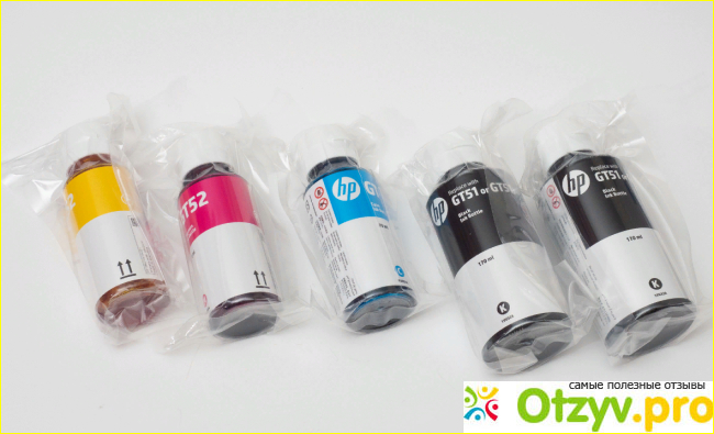 Чернила поставляются в контейнерах, они также упакованы в вакуумные пакеты, поэтому при транспортировке ничего не проливается. Чернила здесь бывают разных цветов: желтый, фиолетовый, синий, черный.