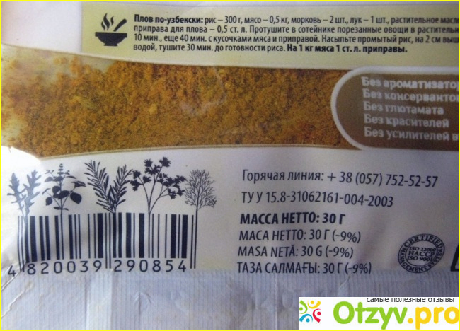 На упаковке даже есть рецепт для приготовления плова по-узбекски. Приправу можно с успехом использовать не только для плова, но и некоторых других блюд.