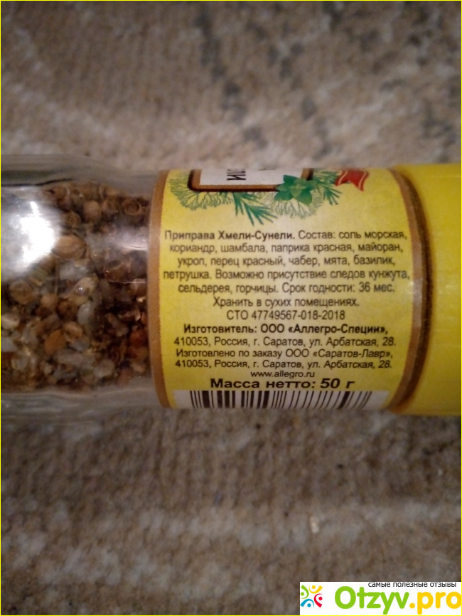 Состав приправы интересный, очень длинный. Но по сути вся баночка приправы заполнена солью и кориандром