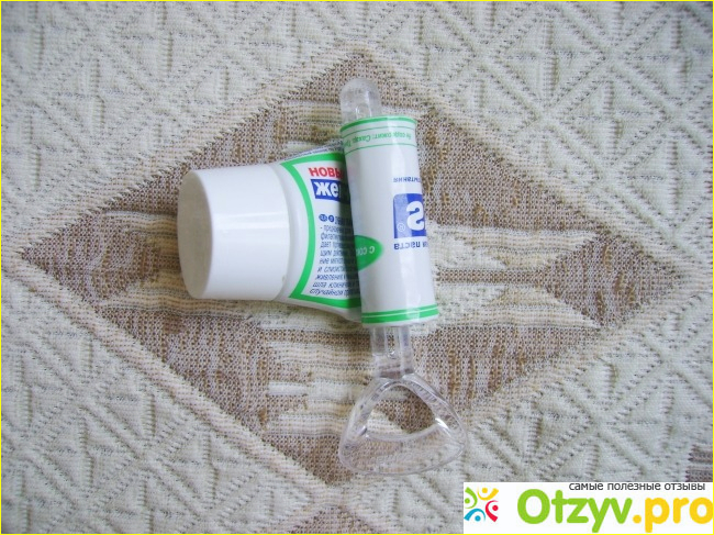 Это большее приспособление и его размер относительно тюбика зубной пасты, вот оно выше - прозрачное.