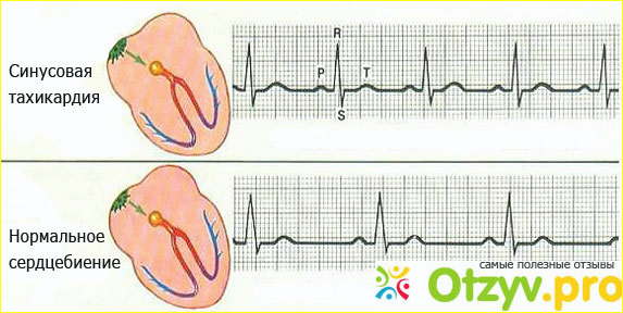 На рисунке изображено сравнение синусовой тахикардии с нормой. Отклонение видно невооруженным глазом.