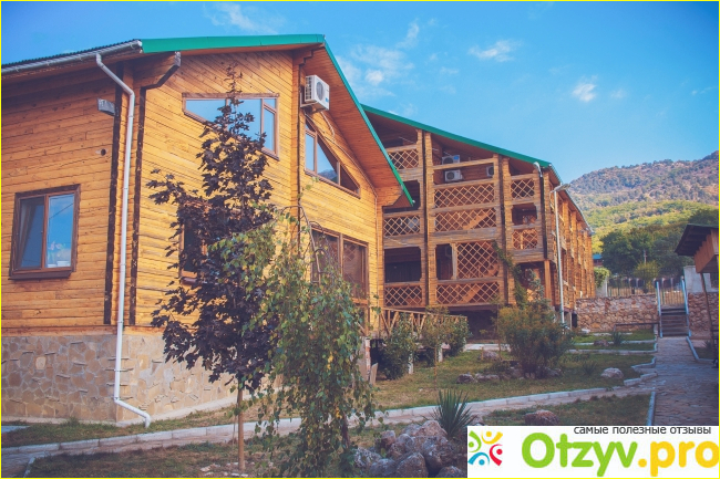 Но перейдем непосредственно к гостевому дому, это довольно большой дом из деревянного массива, очень гармонично смотрящийся на фоне окружающего пейзажа, с благоустроенной территорией, на территории находится баня, бассейн, качели, несколько беседок и второе здание в котором расположены столовая и бильярдная комната.
