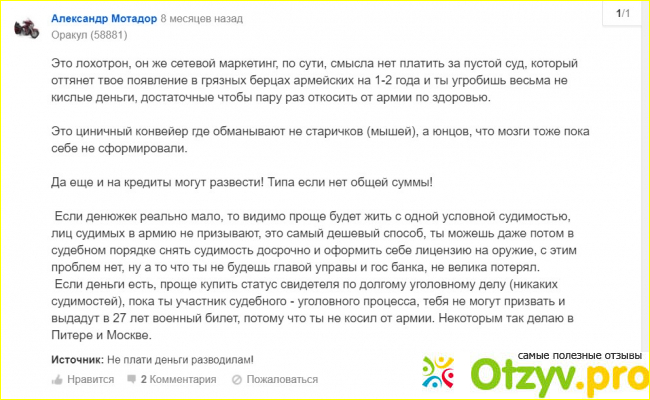 А в самом конце написаны гарантии. «Мы приступаем к оформлению договора, который гарантирует исполнение наших обязательств и 100% возврат средств, если тебя все-таки заберут в армию», - на этом моменте мне, если быть честным, стало немного не по себе. Тем не менее, выбора у меня на вряд ли будет, поэтому попытать удачу и, в случае чего, получить деньги назад – уже неплохо.