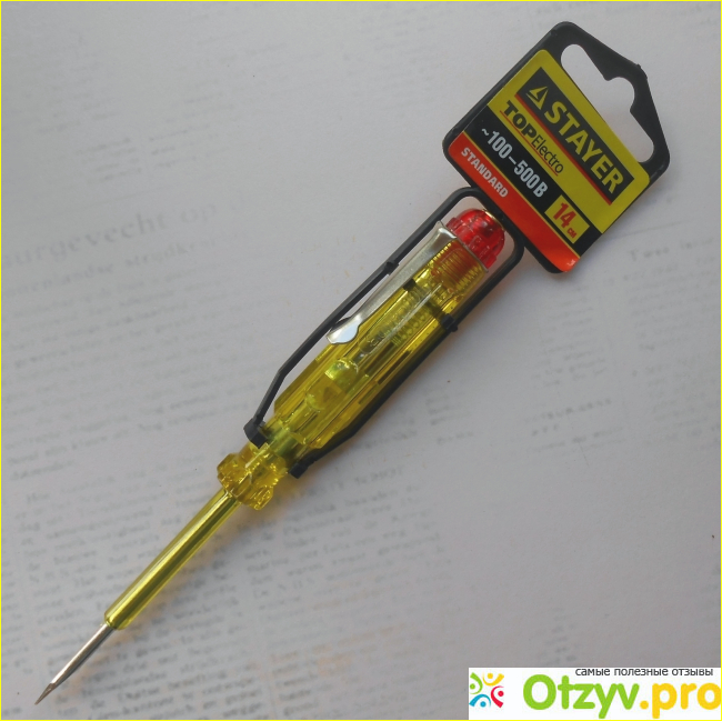 Устройство по внешнему виду напоминает банальную отвертку - металлический стержень с пластиковой электроизоляционной рукояткой. Собственно, некоторые винтики этой штуковиной тоже можно заворачивать, но основное назначение состоит в том, чтобы определять, есть ли напряжение на определенном отрезке электросети.