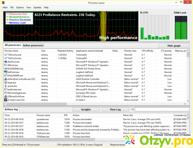 Некоторые возможности: процесс Lasso может поддерживать ваш компьютер и отображать бодрствование в течение X-го времени или при выполнении отдельных процессов. Может ограничить количество экземпляров, которые может иметь процесс в сеансе пользователя. Вы можете установить постоянные аффинности процессора, классы приоритетов CPU и память и приоритет ввода-вывода для процессов. Новые профили конфигурации позволяют создавать и использовать несколько конфигураций, которые вы можете переключать.