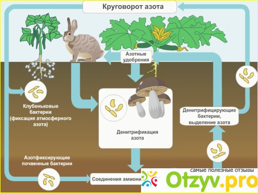 Азотфиксирующие бактерии в почве и корнях растений превращают азот из атмосферы в аммиак.