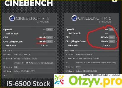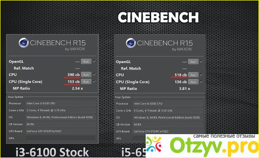 Для начала были сделаны результаты получены в CINEBENCH. Этот бенчмарк, если кто не в курсе, производит рендеринг 3D графики. Так вот, не разогнанный i3 в многопоточном режиме набрал 390 балов. В режиме одного ядра тест показал 153 бала. У i5 результаты в многопоточном режиме были получше и составили 518 балов. Зато в режиме одного ядра последний показал меньший результат, который составил 136 балов. То есть i3 даже в не разогнанном состоянии в однопоточном режиме показал лучший результат. Это конечно вполне объяснимо тем, что у i3 базовая частота выше за i5.