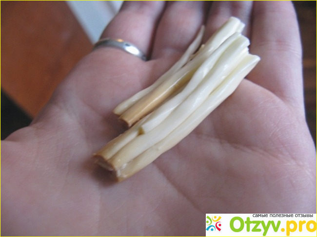 Вот решили однажды, когда приехала в гости моя сестра с ребенком, купить им две "косички" – копченую и не копченую, потому что ребенок очень любит такую сырную косичку – ребенку 6 лет. Конечно, понятно, что это не очень полезный продукт, но все равно ребенок любит, а сестра, то есть его мама, позволяет ему есть такие косички. Да и я не отказалась бы, хоть иногда, побаловаться такой сырной так называемой "косичкой".
