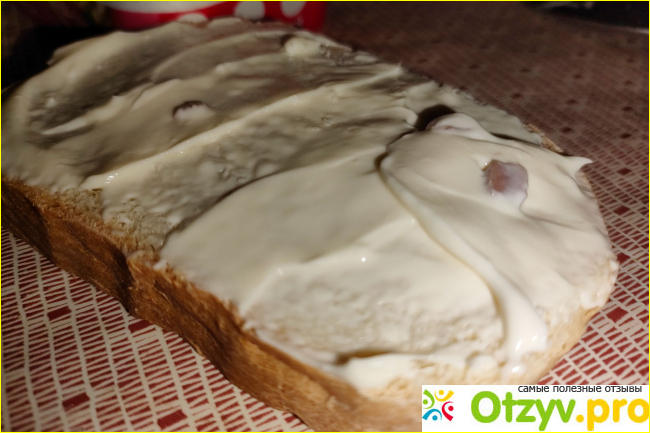 Он почти белый приятно пахнет, удобно мажется и имеет хороший вкус. Специй мало, консистенции пластичная в меру, не жидкая.