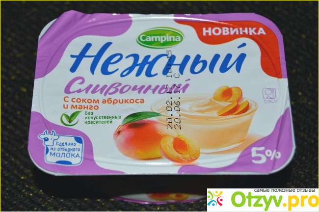 Вот сегодня купили дочке очередную новинку — йогурт от Campina. На упаковке помимо «новинки» много привлекательного. Это и упоминание о соке фруктов, нарисованная корова сбоку, где сказано, что этот йогурт из отборного молока.