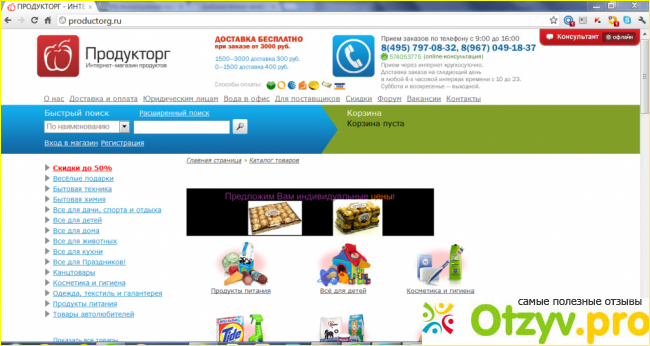 Заказ продуктов на дом является классным способом, если например плохая погода или срочно нужно купить продукты, а на улицу выходить не хочется или если у вас на работе корпоратив и срочно нужны продукты. И вот мы решили приобрести в офис продукты, положить в холодильник для обедов. И мы решили заказать еду именно в интернет-магазине Продукторг.