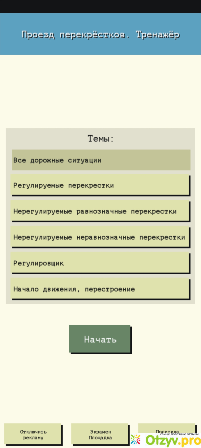 Доброго времени суток. Хочу поделиться опытом использования приложения для Android "Проезд перекрестков. Тренажер."