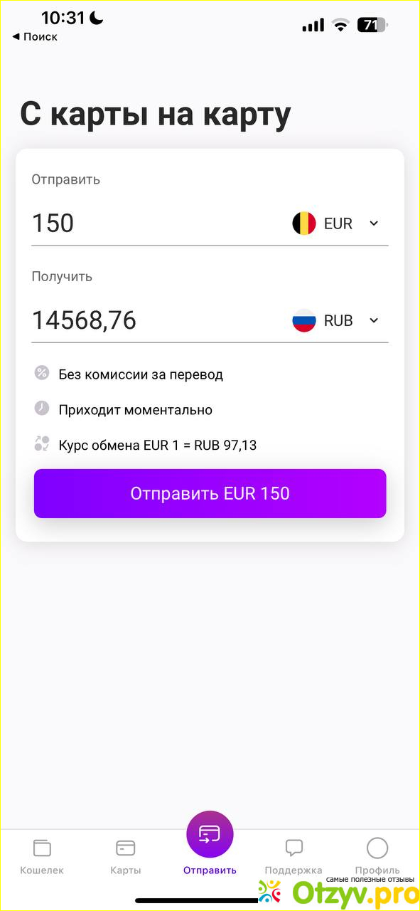 Однако, стоит отметить, что Profee не работает на переводы из России. Это небольшой недостаток, но для меня это не является проблемой, так как я перевожу деньги из Европы в Россию.