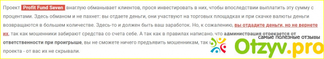 есть партнерская программа, она довершает картину, в которой Профит Фанд Севен вырисовывается финансовой пирамидой;