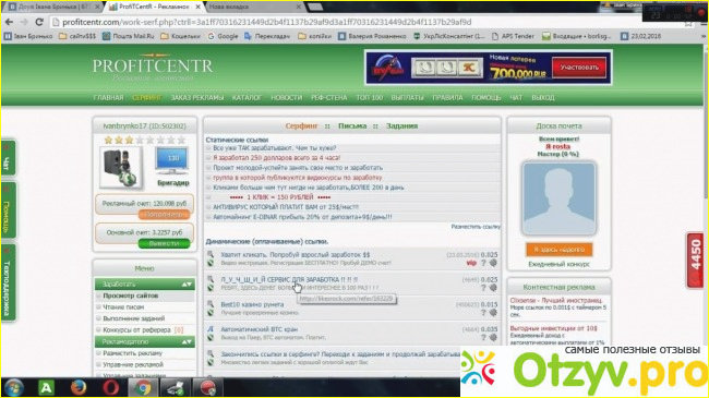 Сайт ProfitCentR я знаю тоже давно, как раз года может с 2013го. Это дает мне уверенность в нем, ведь работает он не первый месяц. На площадке можно зарабатывать на просмотре рекламных ссылок, чтении писем, выполнении заданий. Ну, заработком это не назовешь, ну легкая подработка.
